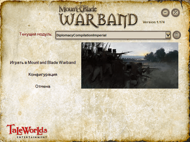 Эта интересная модификация создана разработчиками из Китая. На привычной карте они попытались изобразить вторую половину 19 века путём добавления соответствующей эпохе одежды и амуниции. Есть множество огнестрельного оружия и формы. Заодно автор изменил заставки, музыку, флаги, наёмников в тавернах, спутников (можно встретить и старых и новых, из последних сразу получаются готовые лорды, они переодеты, перевооружены и высокого уровня). Компаньоны сопровождают главного героя в сценах, которые кстати дополнены полированными пейзажами и сменой текстур, и кое-где изменены деревни. Также переделаны локации турниров, виды неба, битвы, где добавилось деревьев и зарослей. Благодаря встроенной дипломатии можно обменять пленных, убедить присоединиться к вашей фракции. Управление осуществляется через трёх советников и министра. Если установлен перевод на warband, то будет понятно большинство фраз.