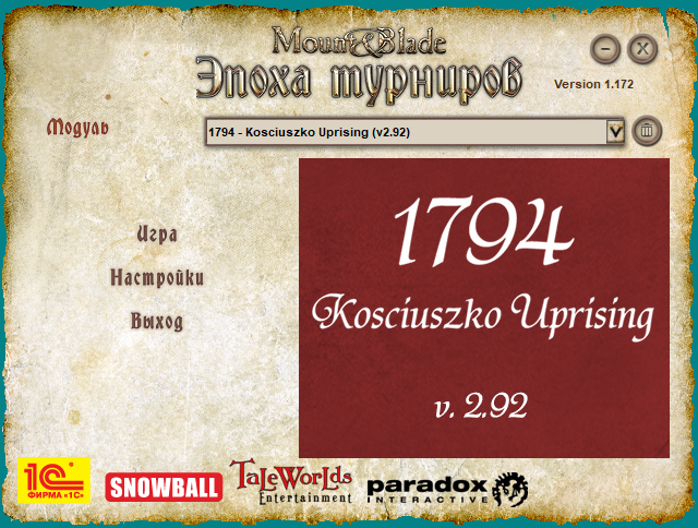 Необычный исторический мод с сильной квестовой составляющей, в котором от привычного нам Варбанда осталось очень мало. Ваш герой на протяжении всего сюжета будет помогать революционерам подготавливать почву для восстания, которое вошло в историю как Восстание Костюшко 1794 года. Автор уделил большое внимание обмундированию и вооружению войск той эпохи. Все сцены тоже соответствуют ей. Возможность построения войск в шеренги способствует увеличению огневой мощи отрядов.