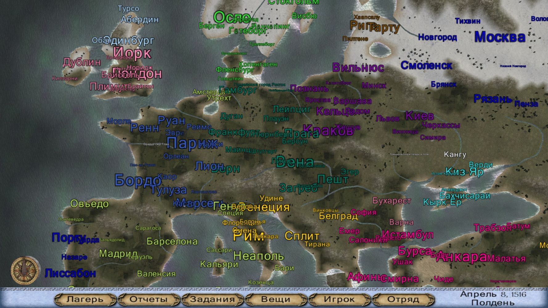 Данный псевдоисторический мод от китайских мододелов, в прошлом носивший имя "16th century Two World", расскажет нам о непростой жизни в 16 веке. Но, в отличие от многих других похожих модификаций, в данной мы можем повоевать не только в Европе, но и Азии и даже Америки. Всего на совершенно новой карте мода разместилось 22 фракции, среди которых встречаются как традиционные Англия и Франция, так и не столь частые гости в Mount & Blade, вроде Китая, Японии или даже вовсе обойденные стороной в других проектах Ломбардская лига и Империя Великих Моголов. В числе других особенностей значатся новые юниты и сцены, различные модели брони и оружия, в том числе и огнестрельное. Что же до новых возможностей, то в к их числу можно отнести систему залпового огня и особого построения у ботов в виде двух рядов (причем, в первом боты стреляют сидя), улучшения для копейщиков, банк, морские битвы с абордажем, подкуп армий, систему пользовательских войск и многие другие, в том числе и тщательно проработанные сцены городов, персонально прорисованные для каждой игровой фракции. Присутствует в моде и новая озвучка.