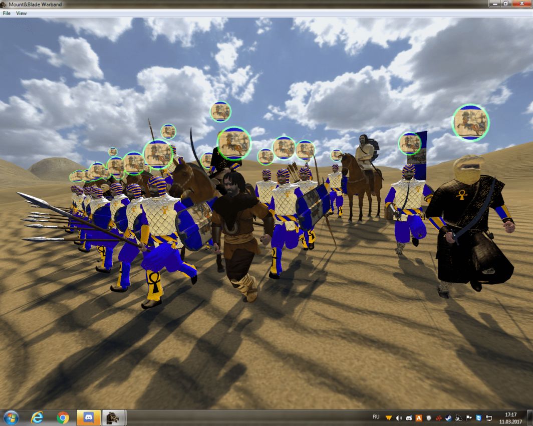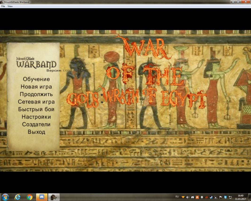 Это ранняя версия мода о Египте и его культуре. Временной период этой модификации охватывает от 10000 до 3100 годы до нашей эры (формирование первой династии). Египет будет разделен между двумя основными божествами. Запланированы новые спутники. Предполагается фракция, которая поможет государству Озирис против предстоящего вторжения Сета. Она также воспрепятствуют строительству пирамиды последнего, которая может принести в мир хаос. Есть новые баннеры и немного собственной музыки. Изменены крики. Готова карта Египта и несколько предметов в магазинах, переодеты несколько юнитов. Чего-либо особо уникального мод пока не привносит, но почувствовать атмосферу получится. Подойдёт перевод от Warband.