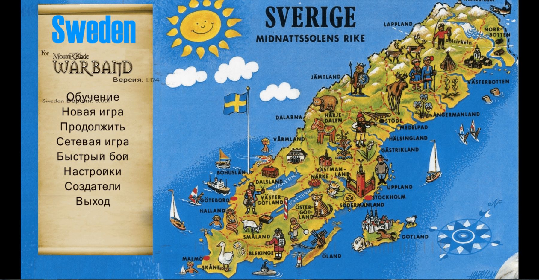 Эта небольшая но очень приятная модификация заменяет нордов на Швецию, во главе которой стоит король Карл Густав. Шведские рыцари облачены в новые доспехи, усилена пехота и арбалетчики. Добавлены новые шлемы, обувь, болты, копья, лошади, несколько новых флагов и заменены меню. Можно наняться наёмником к лорду, встроена дипломатия и РВОD, спутник следует за героем, есть автолут. Пираты переименованы в викингов. Подходит перевод от Warband.