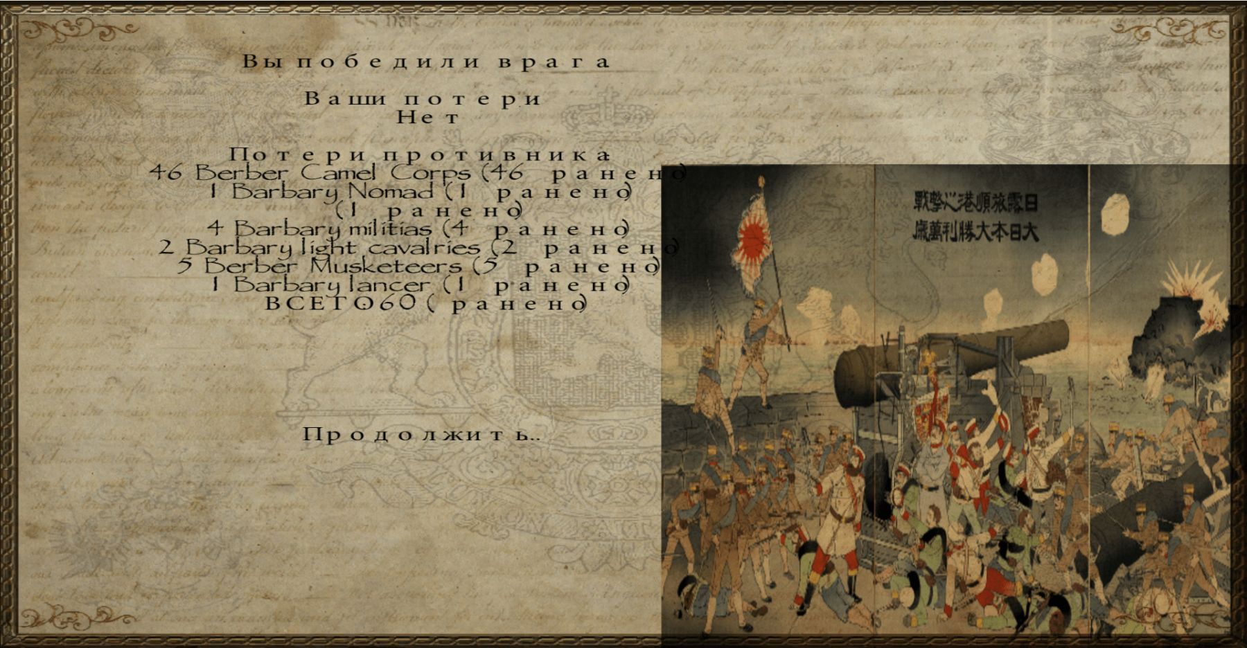 Это историческая модификация, охватывающая период конца 19 века, с очень хорошо сделанной глобальной картой с изменёнными иконками и туманом войны, на которой из основных государств можно отметить Францию, Россию, Англию, Германию, Испанию, Персию, Японию, Судан, Мексику, Швецию и Грузию. Кроме того, есть несколько других стран. Можно увидеть такие поселения, как Москва, Киев, Париж, Афины. Главная особенность - вы можете встретить множество интересных мест, где вас ждут приключения, дополнительные локации разбросаны буквально повсюду. До кучи, есть дирижабли и судоходство. В городах есть банк и бараки, в которых нанимается много рекрутов сразу. Созданы другие сцены, флаги, загрузочные меню, а воины умеют приседать. Добавлена очень приятная новая музыка и звуки. В тавернах можно найти проституток, докторов и других наёмников. Кроме того, переделаны все линейки развития войск, ассортимент товаров в магазинах, и все кто можно переодеты и перевооружены.