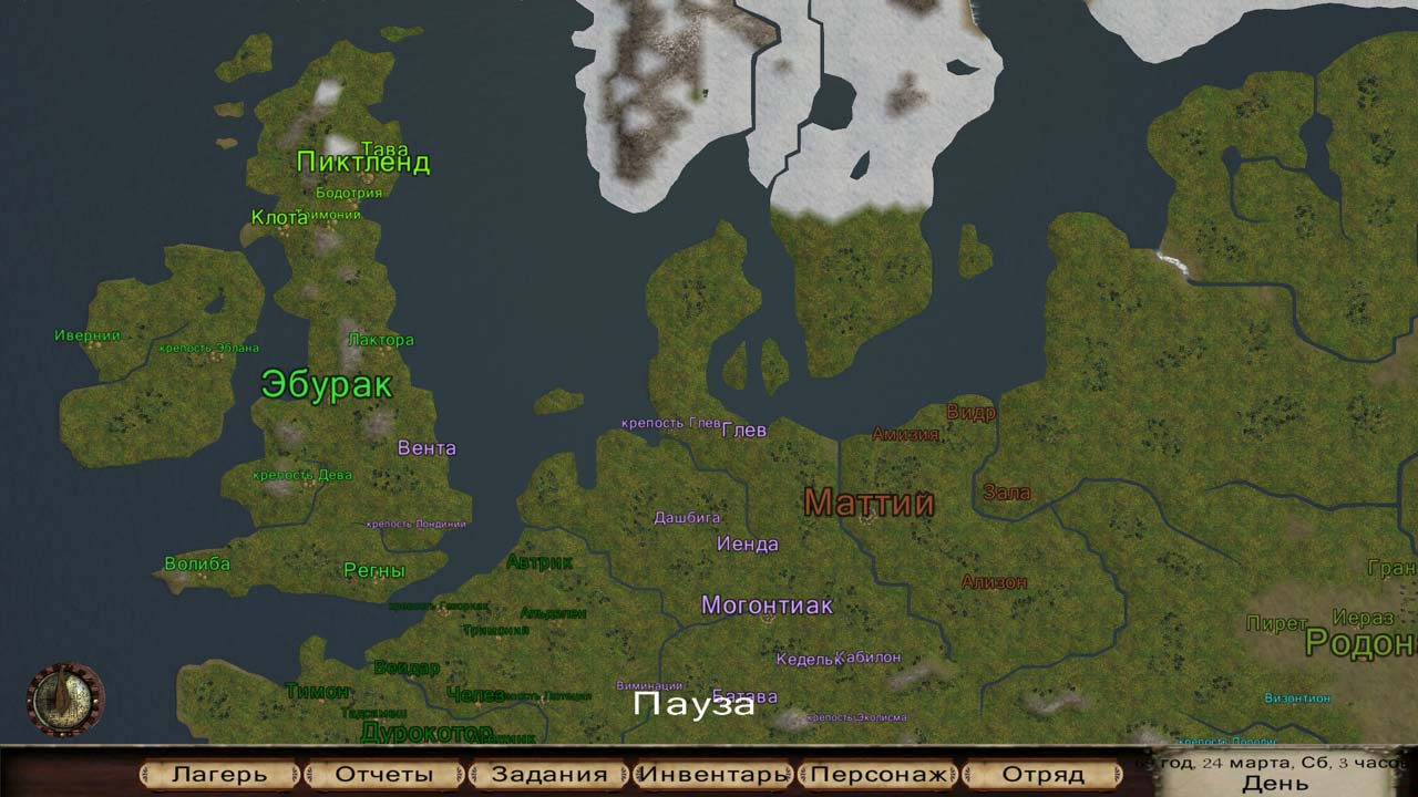 sergl, Пока ограничился Варбандовским набором городов, замков и деревень. Хватило более оживить Галлию, Африку, Азию. Наконец запустил мапэдитор, растянул края карты, чтобы небо не торчало.