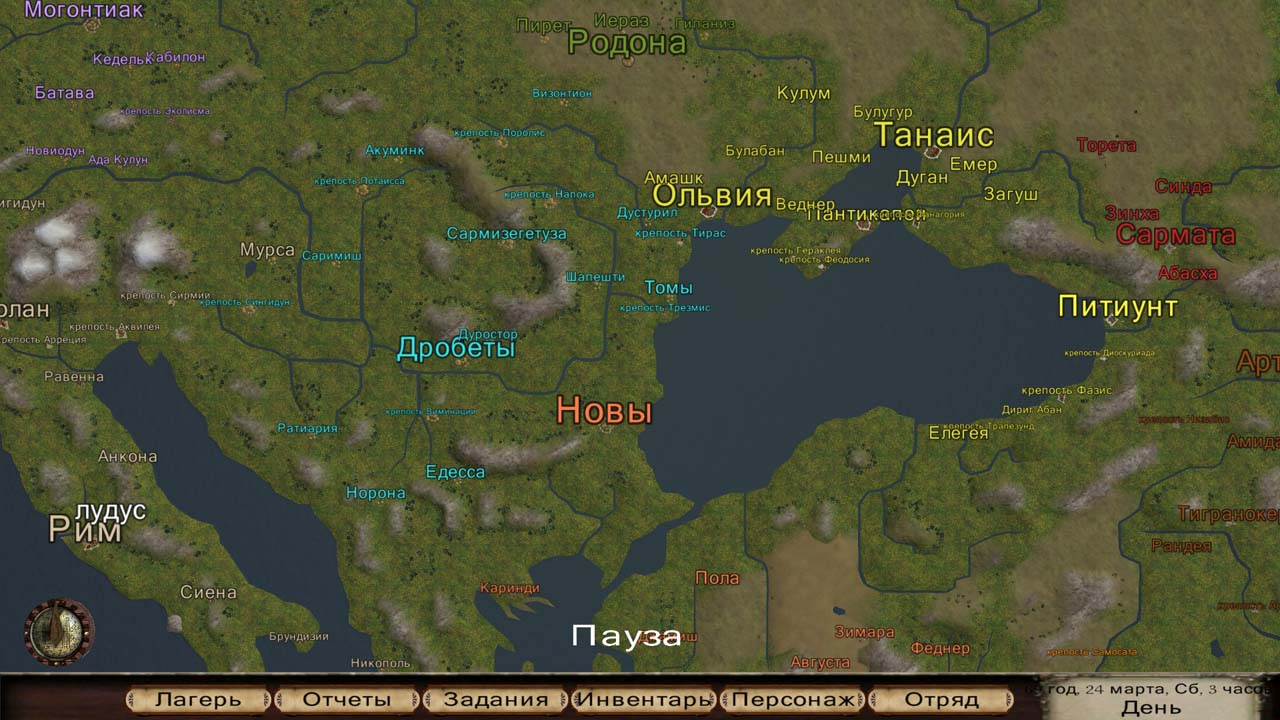 Закончил работу с картой. Города и замки поделены между 9 фракциями. Кельты и галлы имеют деревянные укрепления, даки сидят в заснеженных, имперские и боспорские крепости каменные, африканские и иудейские унаследовали города "саранидов".