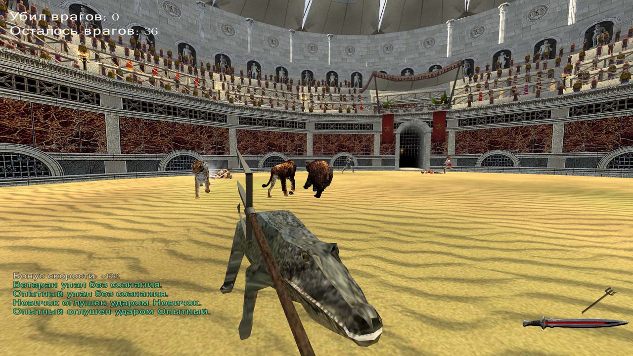 падает раньше, чем анимация удара щитом делает, собственно, удар.Консилиум "аниматоров" уже решает проблему. Еще поднят вопрос о вооружении гладиаторов-стрелков короткими мечами, увеличении скорости и силы удара гладиаторского пешего копья.