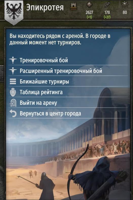 Возможность выбора снаряжения для боев на арене.