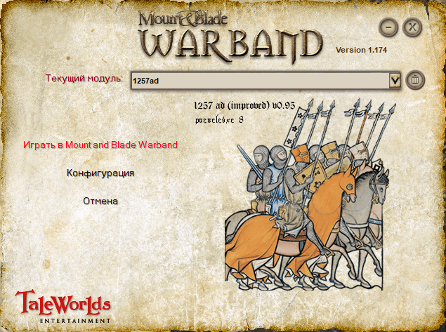 Создание этой модификации берёт начало с истории героя и The 1257 Edition. В версии для Warband вас ждёт отлично проработанная карта Европы с новыми иконками селений, основными фракциями на которой являются Рим, Богемия, Польша, Венгрия и Русские княжества. Переделано много флагов, а лорды и претенденты носят исторические имена. Добавлено множество вещей, коней, картинок в меню, изменены ветви развития солдат и наёмники в тавернах. Есть мини-карта в бою, изменены скайбоксы (это вид неба). Если на Warband у вас установлен перевод, то он загрузится и в этом моде. Для установки - согласитесь на внесение изменений и далее следуйте указаниям автоматического установщика. Отлично запускается на Warband 1.174
