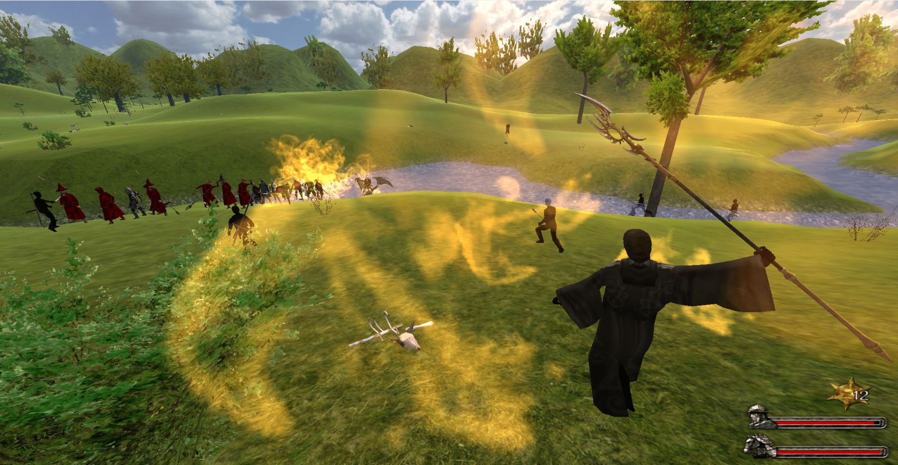 По истории этой крупной модификации от китайского автора, оригинальное название которой "游戏工坊_幻想大陆", человечество и прочие существа развивались всё больше, и в результате возникли новые виды и расы. Древние сказания постепенно забылись, и все они начали воевать друг с другом. Только вам выбирать, кого вы поддержите и чего ищете в этом мире странных созданий. Между ними и поделена вся карта, при этом фракций насчитывается аж 13 штук. Местные жители неплохо владеют магией и любят её использовать. Поэтому в  тавернах можно встретить как обычных наёмников, так и магов, что логично, но лучше набирать воинов в селениях. Кроме того, можно встретить новых спутников. Главный герой может стать орком, светлым или тёмным эльфом, человеком, гномом. Есть новые флаги, сцены битв, звуки (нежить издаёт зловещий хохот), здоровье может восстановиться в бою, можно нанять корабль в прибрежном городе, есть огнестрельное оружие и много нового холодного, можно найти даже зонтик, а благодаря костюмам вы сможете принять любой облик, хоть милого котика (смотреть иллюстрацию). Переделаны и дополнены многие линейки развития воинов, включая бандитов, и некоторые переодеты. В любом месте вас может поджидать армия нежити, можно добавить в свой отряд зомби, и в целом мир похож на смешение автором всего что только можно в отборную солянку (я находил и новых ездовых драконов и шлем Саурона). Если установлен перевод от warband, то вы поймёте происходящее, за исключением пары новых фраз в городах, которые переводятся как : "Что-то сделать" и "Произнести речь", эффект которых непредсказуем. Некоторые государства могут быть изначально враждебны, будьте бдительны.