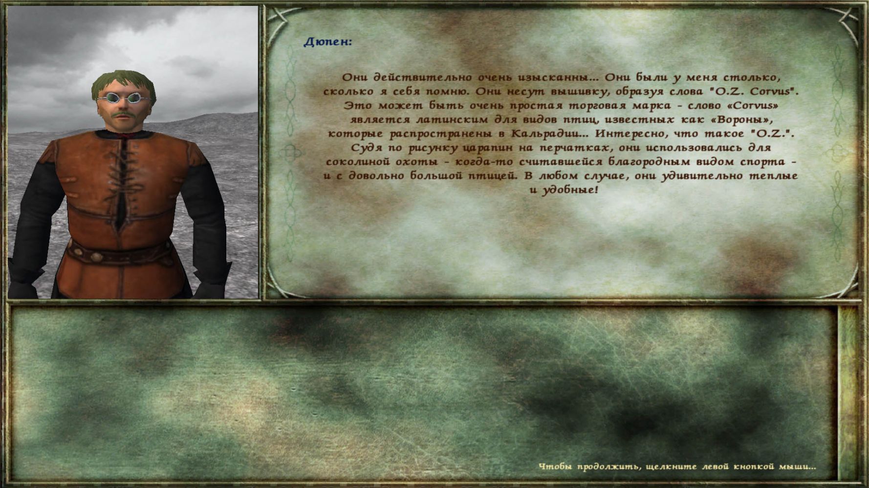 А в таверне г. Ичамур стоит Дюпен. Он хорошо владеет огнестрелом и имеет в инвентаре две очень интересные вещи : Очки и перчатки. Эксклюзив. Он готов стать Вашим спутником.