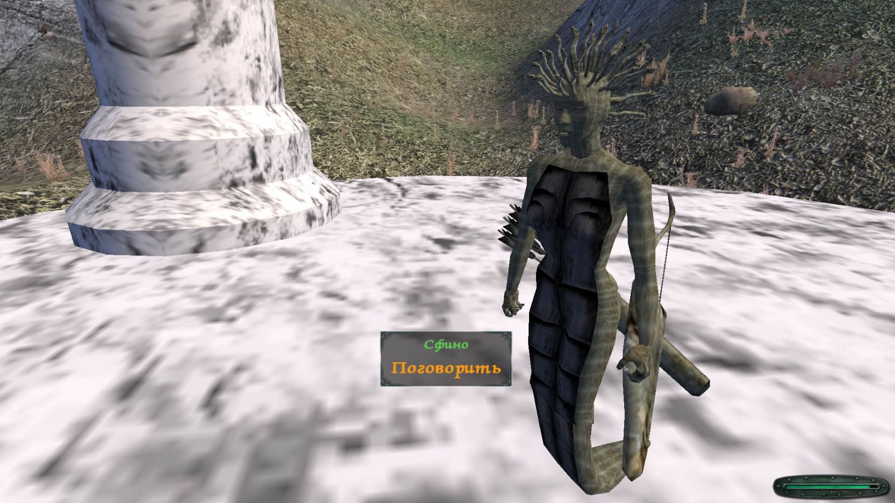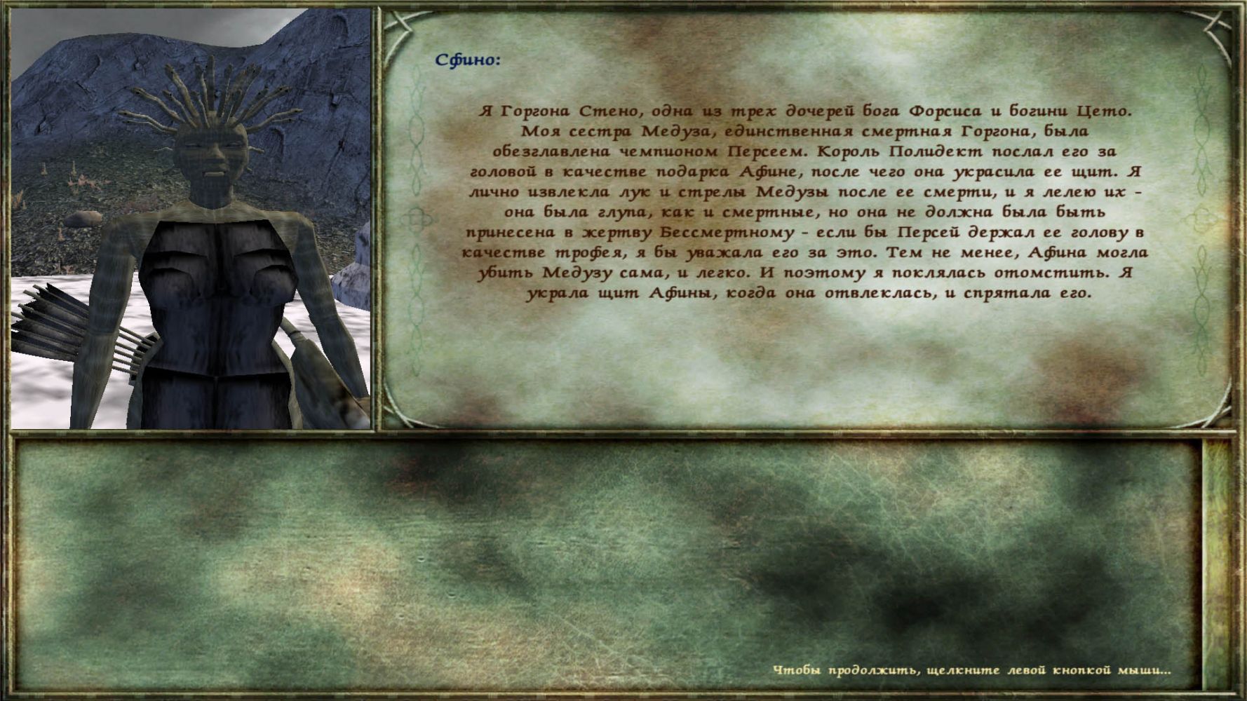 В деревне Тульбук находится разрушенный храм. Хозяйка - горгона Сфино (Стено) может стать Вашим спутником.