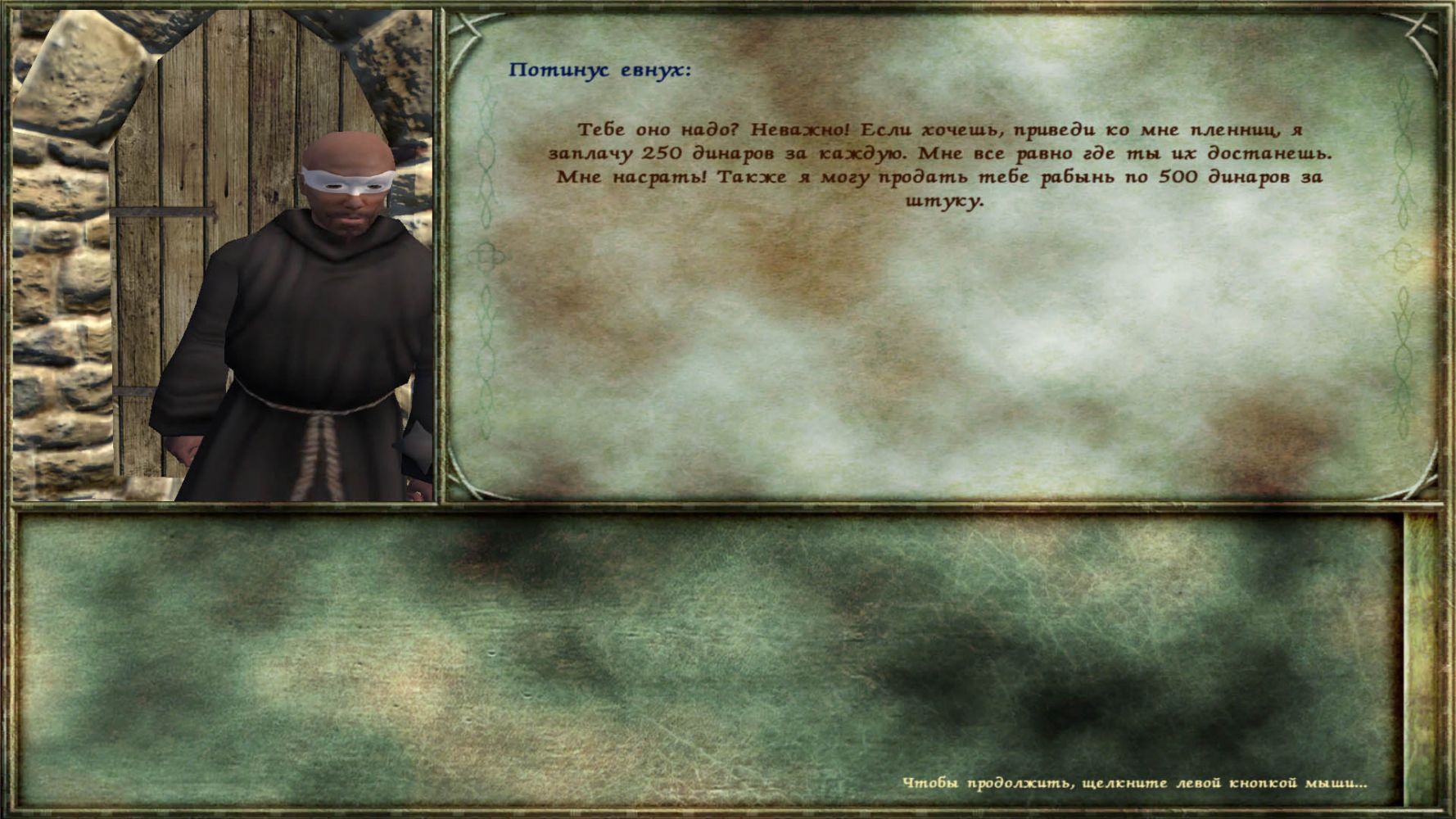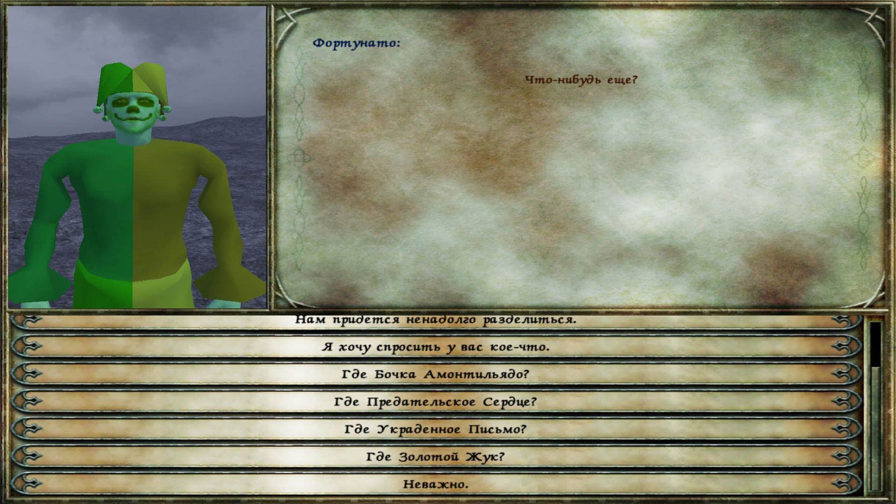 После достижения звания Адепта, изготавливаем Кровавое вино и двигаем в тюрьму Правена. Там находится чудик Фортунато, который дает четыре задания :