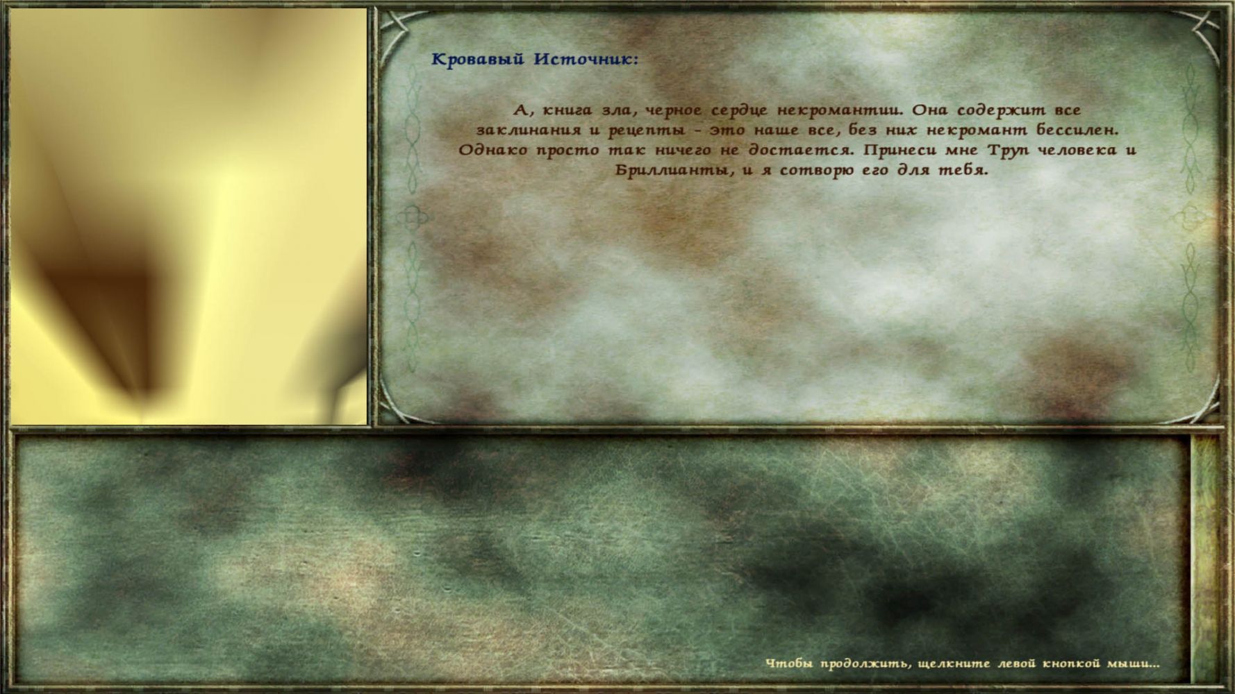 Наиглавнейшим предметом для начинающего злодея является книга Некромикон. Берем ее у Кровавого фонтана, не забыв предварительно спрятать Бесконечный камень в сундук под лестницей в Зендаре. Необходимо перед этим, при разговоре с Кровавым источником, выбрать игру за Смерть. Обязательно надо выполнить все пункты в каждой части Некромикона для достижения очередного звания в иерархии злодеев. Это даст возможность создания более продвинутых монстров и особых предметов, увеличивающих навыки.