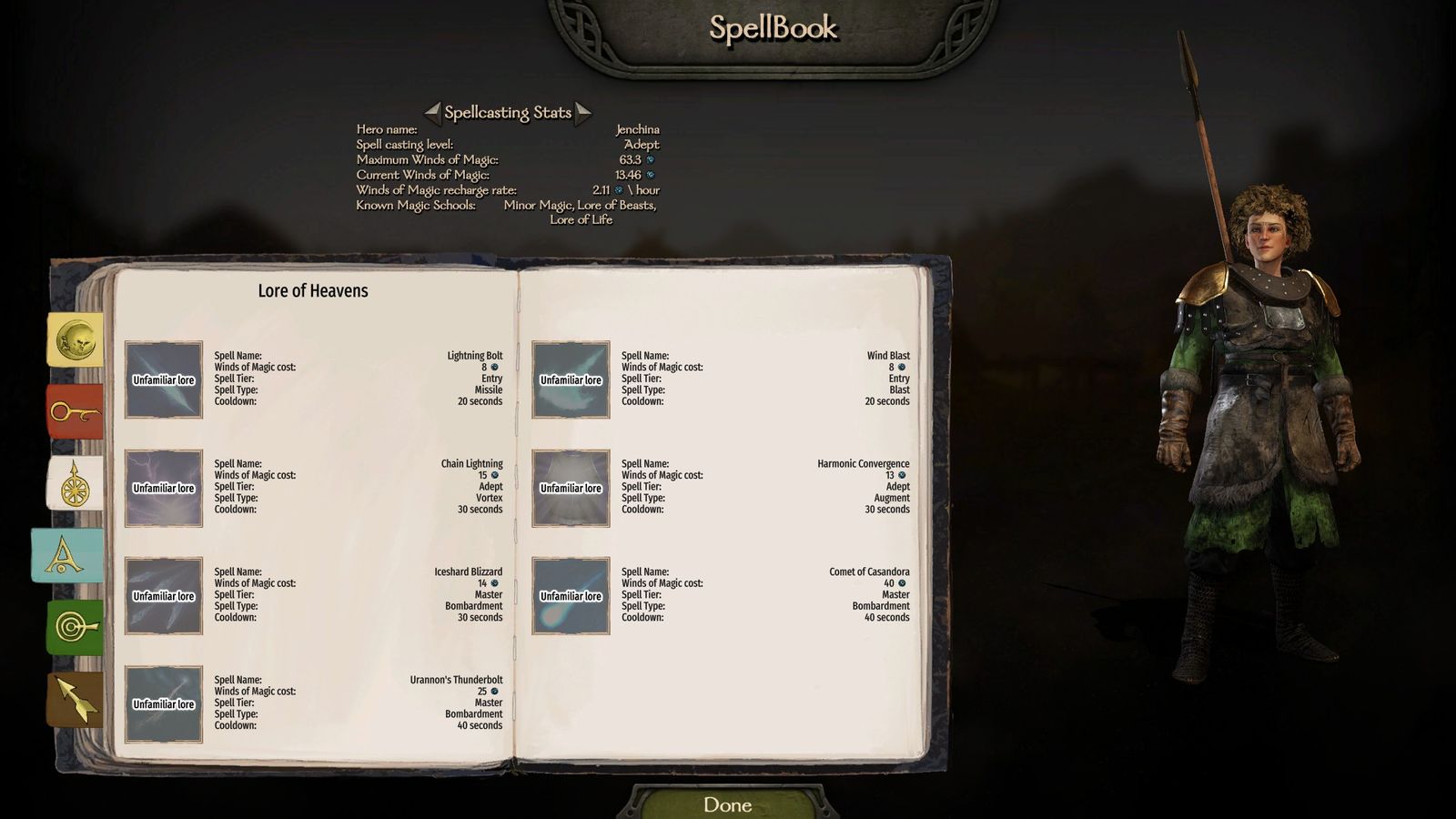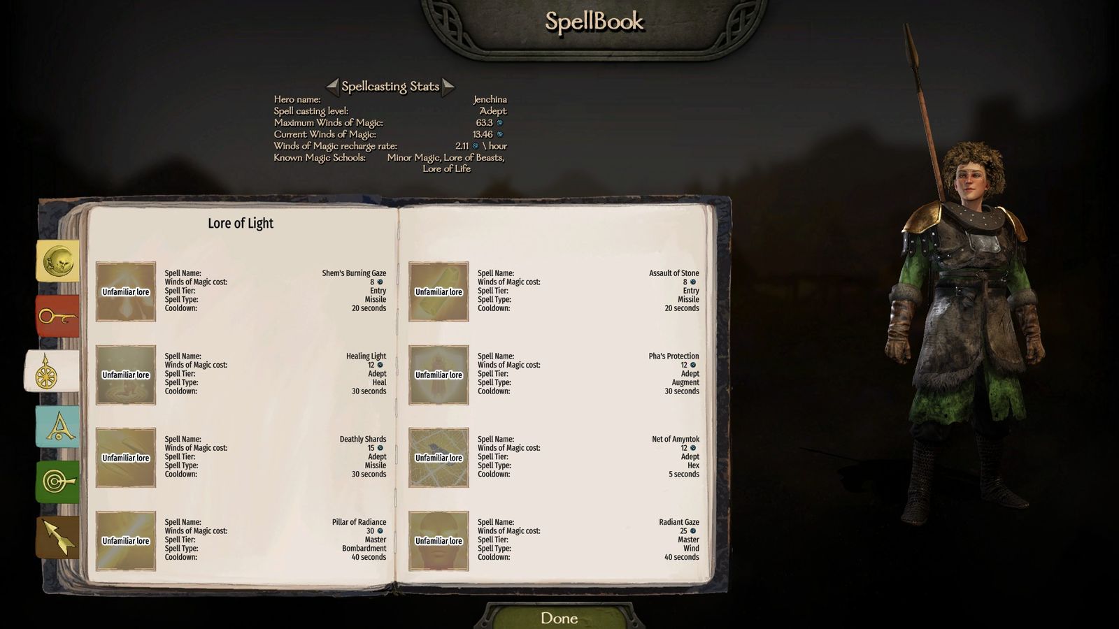 • Певец заклинаний. Волшебник лесных эльфов с умением призывать духов во время боя. Набор школ магии сопоставим с обычны магом, но имеет свою карьеру. В отличие от обычных магов, его эффективность связана не только с ветрами магии.
