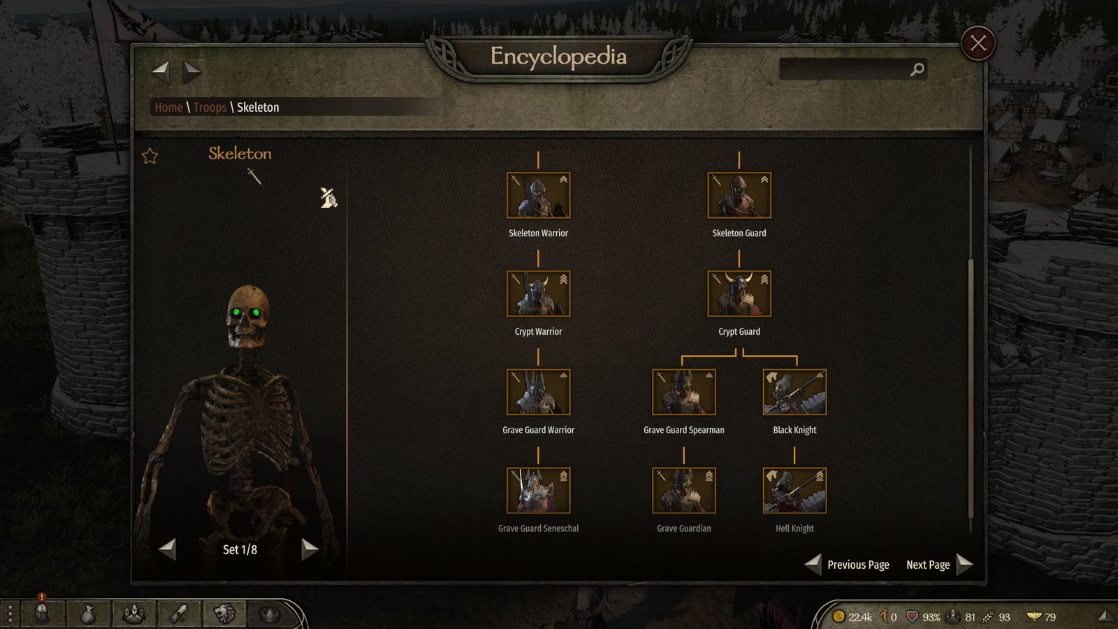 Для вампиров и некромантов доступна возможность получить с свою армию скелетов. Скелеты не требуют денег и еды на содержание, но они не слишком сильные войны, хотя и имеют небольшую ветку развития. Скелетов можно либо поднять на кладбищах в вампирских городах, либо из некоторого количества убитых противников после боя. На кладбищах скелеты по сути представлены в неограниченном количестве, но на их поднятие нужно время - 8 часов за каждый заход.