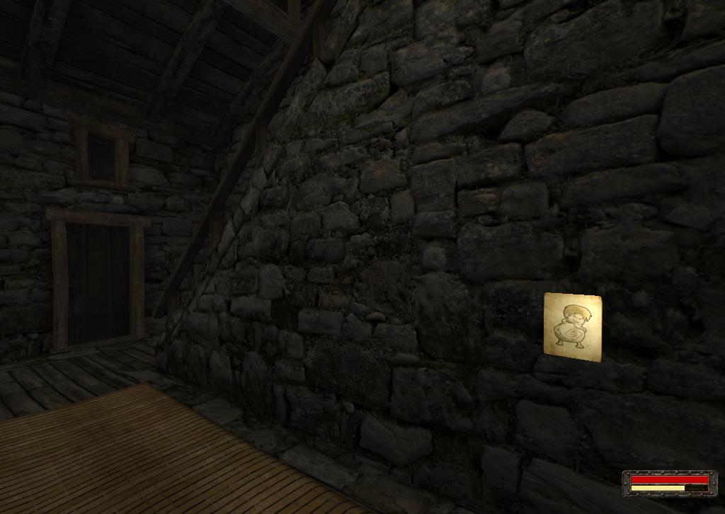 б) Войдите в замок Дерчиос и проверьте зеркалом стены. Скрытое место наверху, там стоят два чучела.