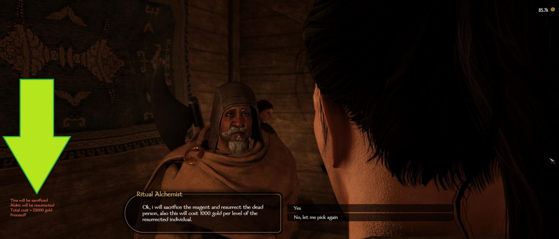 Этот мод добавляет в таверны новый персонаж по имени Ритуальный алхимик (Ritual Alchemist), который поможет вам воскресить любого героя (кроме Радагоса). Но не все так просто, вы должны будете подчиниться Закону эквивалентного обмена, оплачивая золотом и жизнью одного из членов вашего клана это действо. Алхимик - старый и мудрый человек, но ему немного не хватает терпения. Поэтому беседуйте с ним крайне осторожно и не задавайте слишком много лишних вопросов.