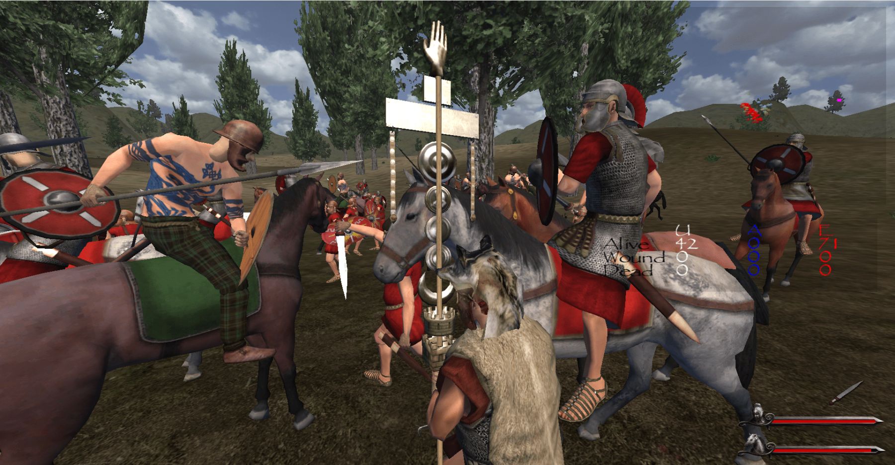 Это модификация от разработчиков из Китая, оригинальное название которой читается как "罗马:高卢战记". Глобальная представляет собой Нил и его окрестности, и совершенно не претендует на соответствие истории. Население в большинстве представляют римляне и галлы, разделённые на пять фракций. Наиболее крупным государством являются северные провинции Рима. Вооружение и снаряжение соответствует выбранной эпохе и видоизменённым линейкам развития и наименованиям воинов. Изменены заставки и меню, а к старым флагам добавились несколько новых. Есть банк, функция построить свой аванпост и мини карта в сражении, встроена возможность быть наёмником. Новобранцев можно нанимать в деревнях и городах, последние, как правило, чуть выше рангом. Добавлено множество брони, улучшены крики в бою. Если установлен перевод на warband, основные моменты будут на русском языке.