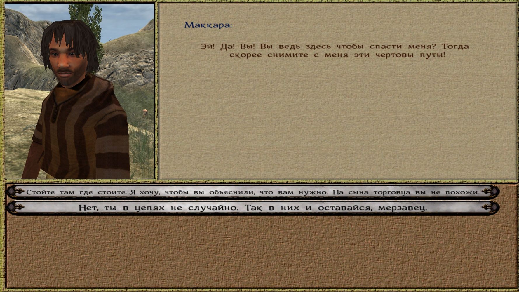 Маккара. Его можно взять в отряд, если уничтожить любое логово бандитов. В моем случае это были степные бандиты. Брать задание на их уничтожение у лордов не обязательно, достаточно обнаружить это убежище. Он хороший следопыт, но слабый воин, хоть и верховая езда у него 3. Его найм бесплатен.