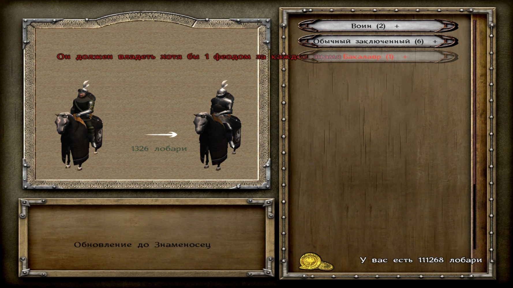Всего можно из рыцарей нанять 15 баронетов-спутников. Что интересно, их можно оставлять в замковых гарнизонах.
