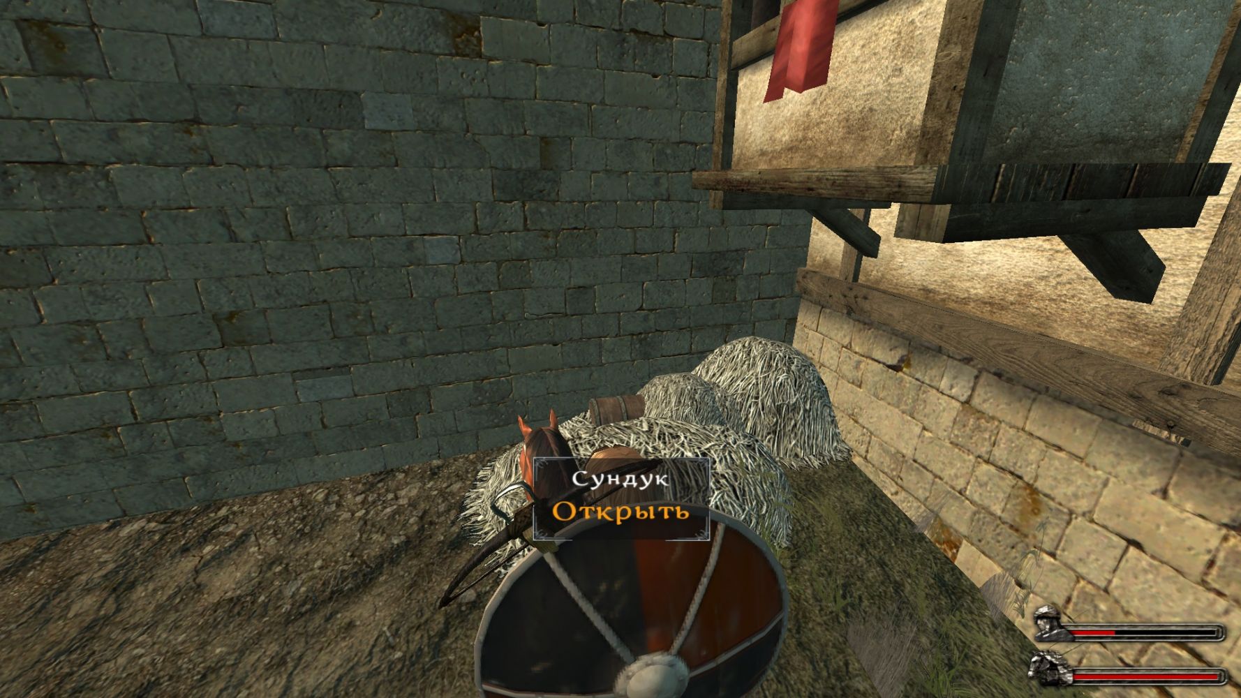 Тайный сундук. Город Водианер, в стоге сена. Необычные доспехи и необычный короткий меч из известной пасхалки помогут на первых порах.