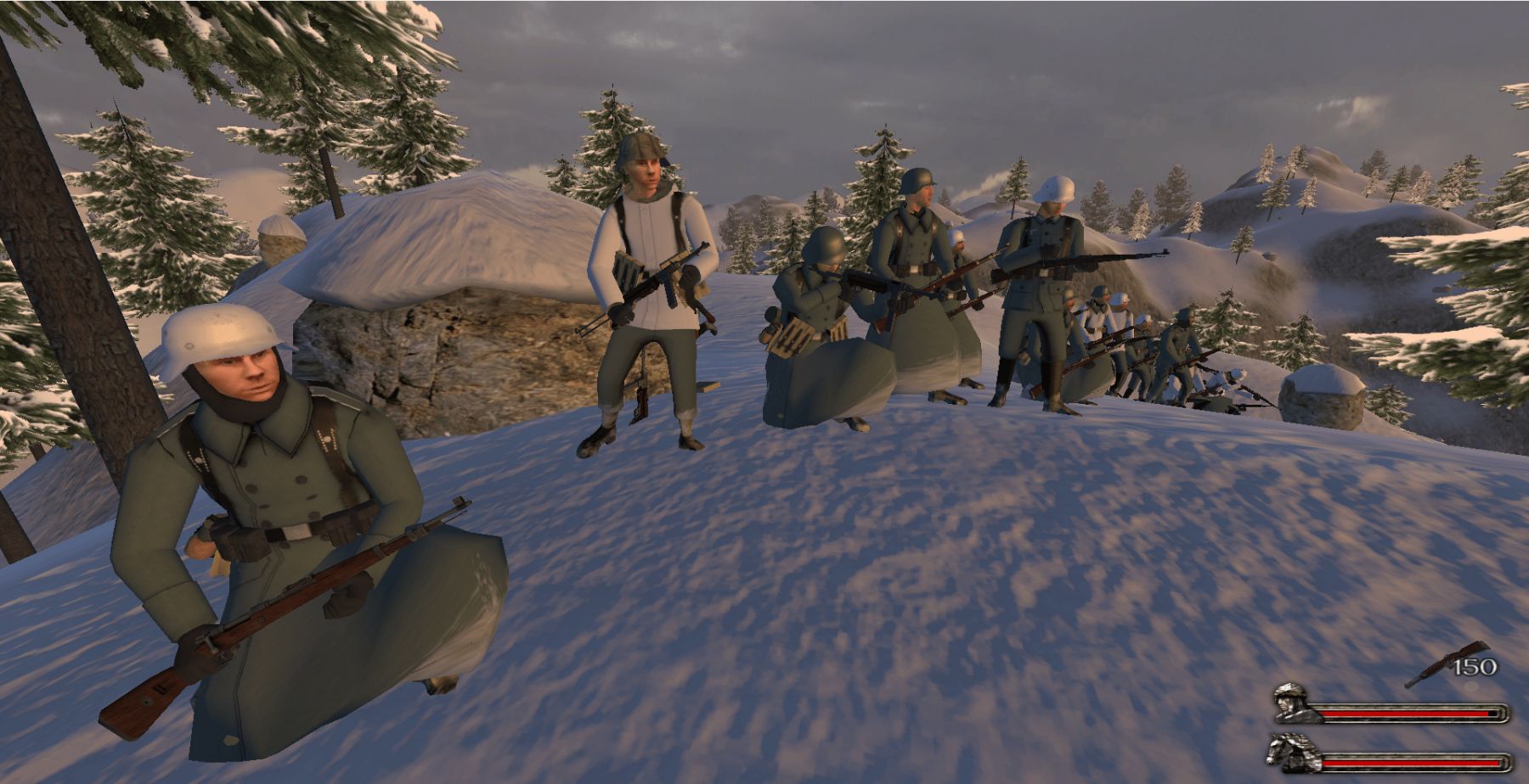 События этой первой версии псевдо-исторической модификации посвящены временам Второй мировой войны, а конкретно - сражению между американскими и германскими войсками в 1944-1945 годах. Историческое название этого момента - Арденнская операция. Учитывая специфику, фракций насчитывается всего две, каждая имеет свою форму и оружие. Глобальная карта также переделана. В продажу добавлены мундиры, гранаты и огнестрельное оружие. От сцен, к сожалению, изменены полторы штуки, поэтому полного антуража не ждите.