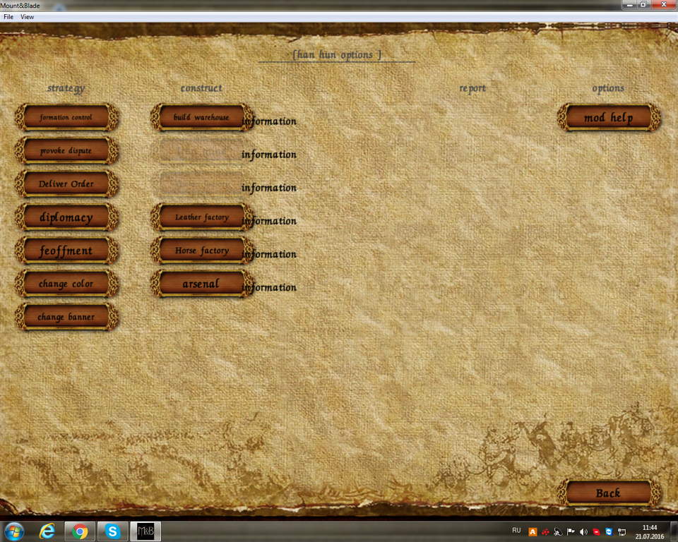 Отбегите на пару сантиметров рядом и возведите Warehouse (можно несколько и лучше на вашей территории), он нужен как база-склад для всех ваших предприятий. Когда он построен, откроется возможность строить всё остальное из того же меню, всего три предприятия на один Warehouse. Тыкаем в закладку Лагерь - Mode options - в колонке construct выбираем нужное предприятие.