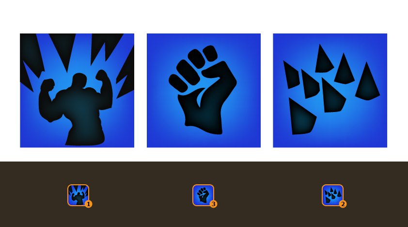 Сегодня мы попробуем подойти к задаче, с другой стороны. Возможно, наша просьба покажется для вас очень простой, но все же! Мы просим вас назвать к какому архетипу (Защита, Бой, Саботаж) принадлежит каждый из наборов иконок. Названия умений и в этот раз не будут видны.
