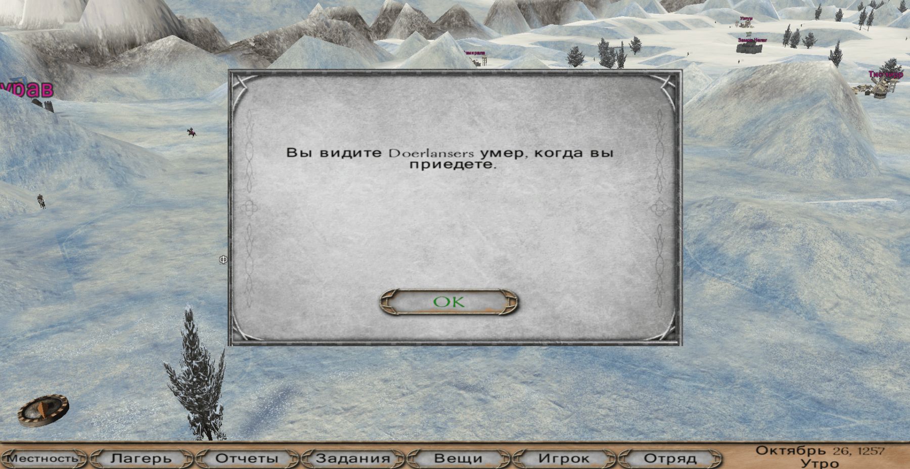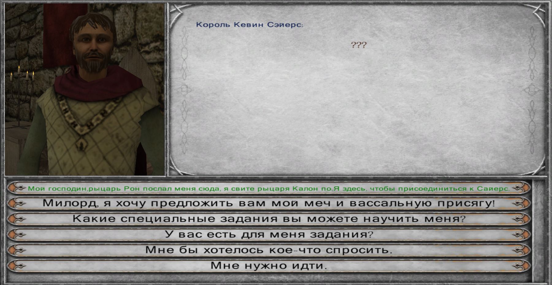 Многие из вас, наверно, часто хотели не просто выносить толпы врагов, но и иметь какую-то цель. Эта модификация как раз предоставляет такую возможность. К этому замечательному моду существует несколько русификаторов, но, поскольку оригинальный язык - китайский, существует разница и некоторые неточности. Поэтому гайд написан с разными вариантами названий и кнопок. Подчеркну также, что я не стану описывать только прохождение (его и так можно боле-мене понять из переводов, прочтя вкладку "задания", а разберу некоторые особенности, которые могут помочь и покажу то, что иногда бывает трудно найти. Чтение китайского официального форума подсказывает, что иногда людям трудно найти определённое место, отряд, либо понять, как двинуть сюжет дальше. Добавлю также, что автор продолжает работать над модом, и возможно, когда-либо этот гайд будет пополнен. Обратите внимание, что модификация построена на прохождении сюжета, в неё нельзя играть как в обычный мод без риска запороть прохождение. Поэтому совет: не вступайте в первую попавшуюся фракцию, вступать потом понадобится по сюжету конкретно к королю Кевину Сайерсу (фракция сайерсов). Можно наняться к нему наёмником, спрашивайте у лордов задания, пока они не предложат контракт. Заодно он оплатит содержание всех воинов своей фракции в вашем отряде. Также, лучше не спрашивать у лордов других фракций специальные задания (фраза "чему бы вы могли научить меня?") до поры до времени, как правило они поручают убивать их врагов из другой фракции. Фраза появляется после вступления в отряд Джеффри, он же будет считать поверженных. Старайтесь не захватывать себе перечисленные в данном руководстве города, иначе, возможно, что-то пойдёт не так. Если вы обнаружили нечто интересное, о чём здесь не написано - не стесняйтесь пополнить комментарием. Итак, поехали.