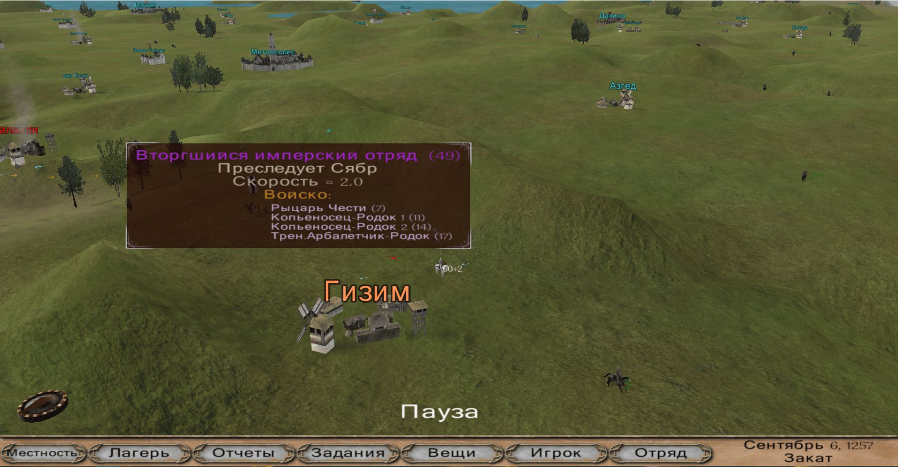 Теперь Харек просит набрать 20 рекрутов в деревнях и вырастить ему 10 пехотинцев и 10 стрелков. Задание зачлось, когда я сдал ему 10 пехотинцев, 5 лучников и 5 арбалетчиков.