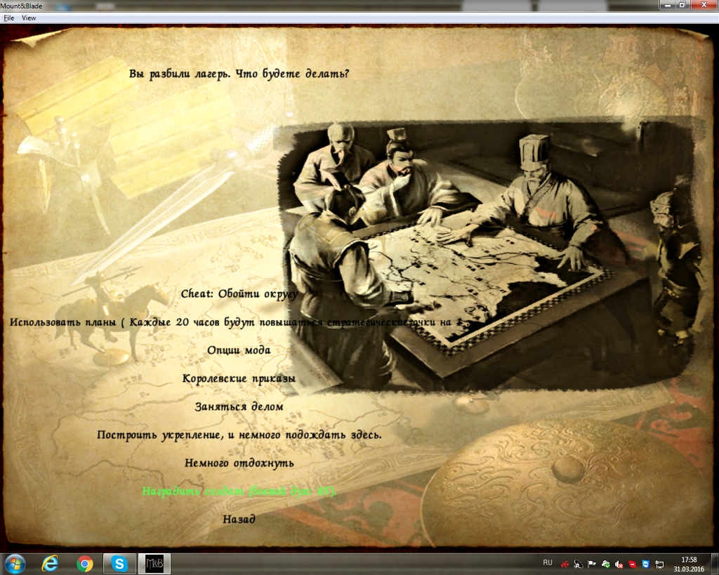 Эта модификация основана на ранних версиях  storm of the three kingdom, иногда называемого "Троецарствие" для Mount & Blade, или "Истории Героя". Основной отличительной чертой  является полное отсутствие фэнтезийных зверей и спутников вроде Саурона в отряде (они добавлялись патчем, который впоследствии был утерян), а также фэнтези - предметов и ездовых существ в сундуке таверны в локации "Земной рай". То-есть теперь, взяв задание у аксакала во дворе таверны громить силы хаоса, придётся делать это без любимого мопеда и брони +1000 к защите. Встроен русификатор от более поздней версии 2.55. Модификация имеет сюжет, которому вы, впрочем, следовать не обязаны, можно играть как в обычную песочницу.