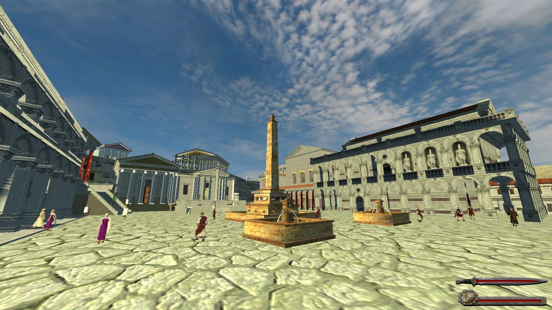 Не обошлось и без тематической атрибутики римского мира. Так, например, особый интерес представляют битвы на арене и турниры, ход которых протекает в несколько измененном виде. Главным образом стоит отметить присутствие животных, выполняющих роль дополнительного противника, бегая по периметру и ваншотя гладиаторов. Движок Mount&Blade, правда, всячески противится такому решению, что выливается в не очень богатых анимациях и неудобных хитбоксах, но сама идея заслуживает уважения. Кроме того, на римских территориях можно встретить лудусы, где можно заполучить себе собственного гладиатора. Прибавьте сюда и кучу дополнительных опций, набирающихся в моде по мелочи, но составляющих общую картину: банки, возможность просматривать ветки солдат, дополнительные отряды, следующие за лордами, жрицы любви в тавернах.
