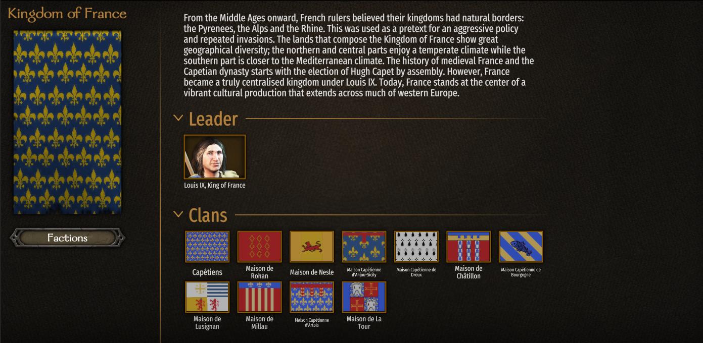 Новые кланы со своими исторически точными знаменами, лордами и другими представителями знати.