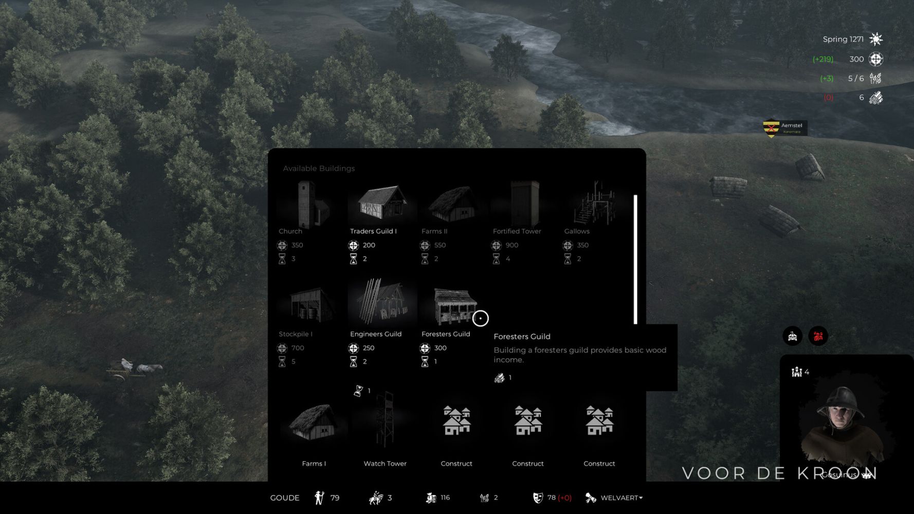 Voor De Kroon ставит своей задачей совместить глобальное управление средневековым государством с жаркими сражениями, в которых ваш персонаж сможет выступить и командующим, и воином. Экономика и развитие городов здесь совмещаются с приказами на полях битвы, а возможность взять в руки меч и пойти самостоятельно рубить врагов перекликается с легендарной серией Mount&Blade. Немалое внимание в игре уделяется атмосфере и средневековой стилистике, основанных на исторических событиях.
