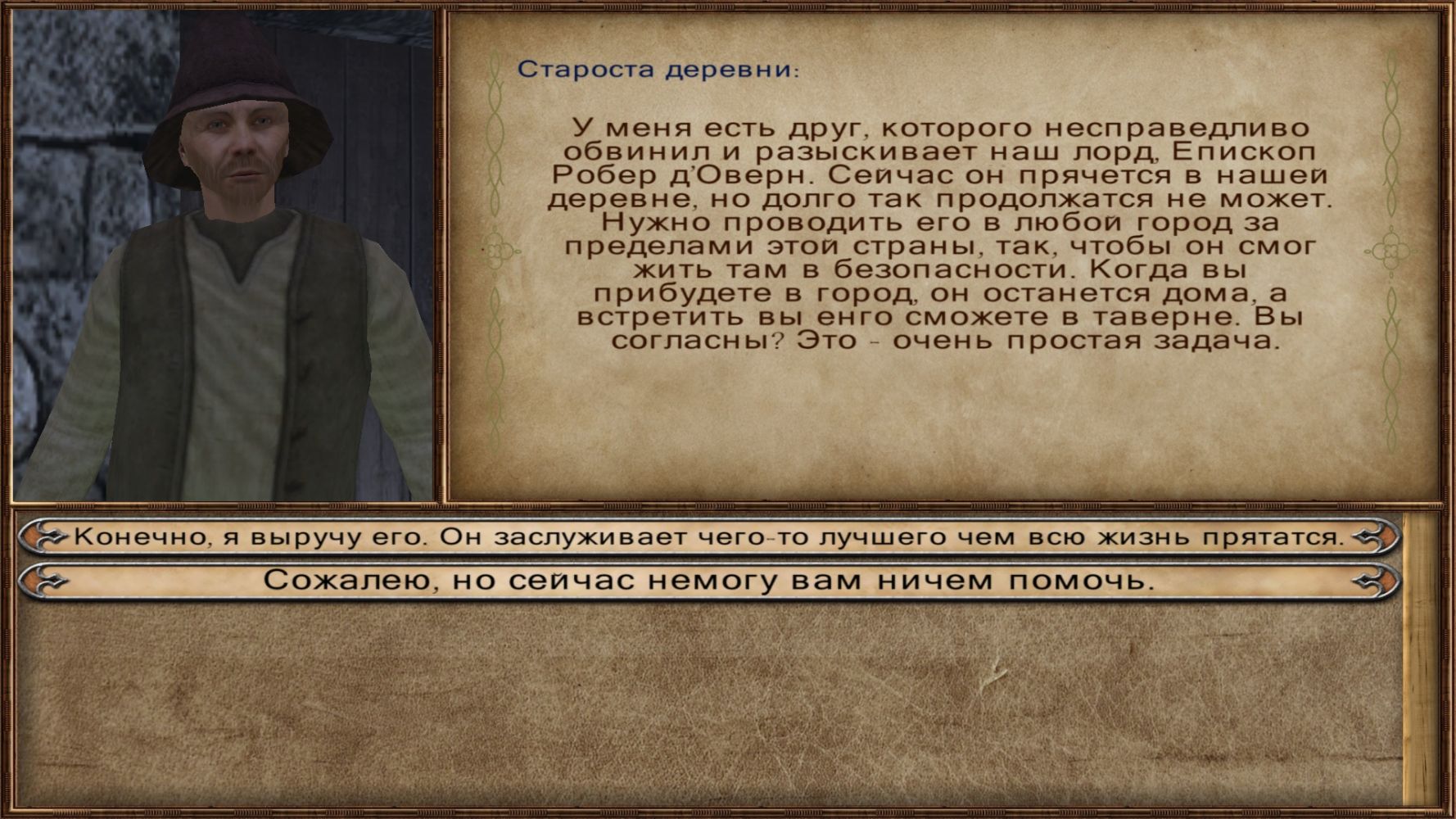 ''Помогите беглецу добраться до границы'' (Квестодатели - Старейшины деревень). Надо спрятать человека, обидевшего местного лорда, в своем отряде, пока вы не достигнете соседнего иностранного города или деревни, где он сможет исчезнуть навсегда. Можно также сдать его лорду. Выбор за вами.