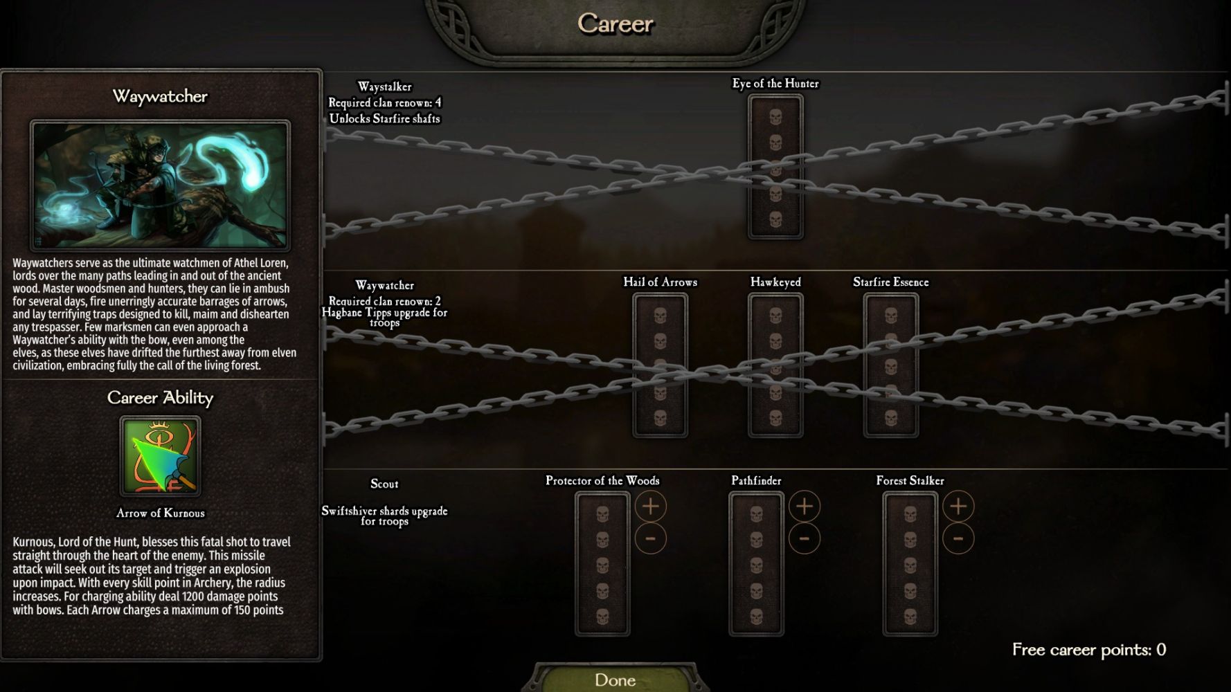• Рыцарь бретоннии. Обычный человек, только предпочитающий скакать, а не бегать на своих двоих, на что и рассчитана его ульта. Основной упор пути - еще больше улучшения кавалерии и значительная прибавка к здоровью ГГ. Среднячок по эффективности и требует хорошим навыков для применения спецспособности