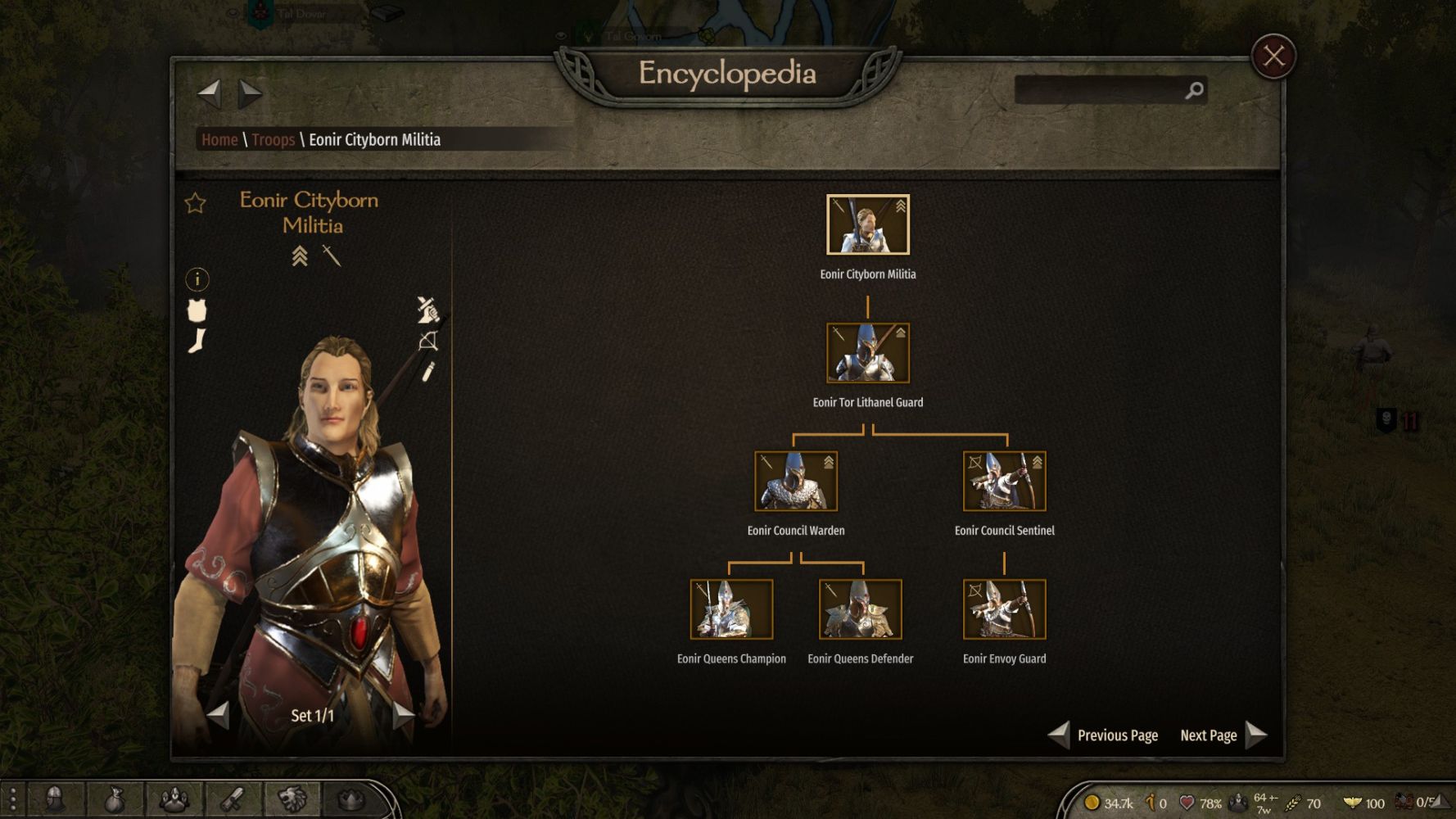 Эльфы эонир. Представлены небольшим анклавом стражей Лаурелорна в северных землях империи. По сути это тоже лесные эльфы, но обособленные. Их территория мала, поэтому в случае войны с людьми они будут явно не в лучшей ситуации, а каких-то ультимативных войск эльфы не имеют. Их ростер поделён на две группы - рождённые в городах (только пехота и лучники) и рождённые в лесах (тоже самое, но ещё несколько отрядов кавалерии). Единственное преимущество эльфов - умение использовать высшую магию, ну и территории у них более-менее спокойные в мирное время.