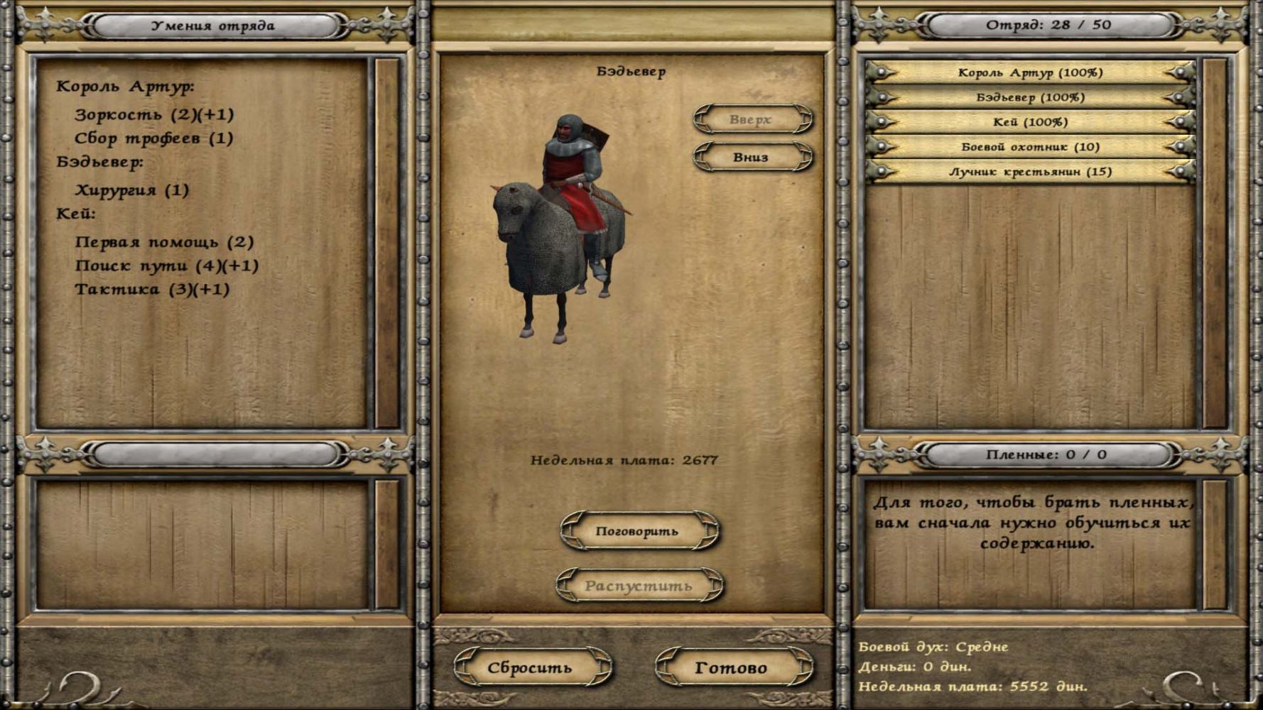 Через меню лагерь можно нанять конных дворян и другие войска.