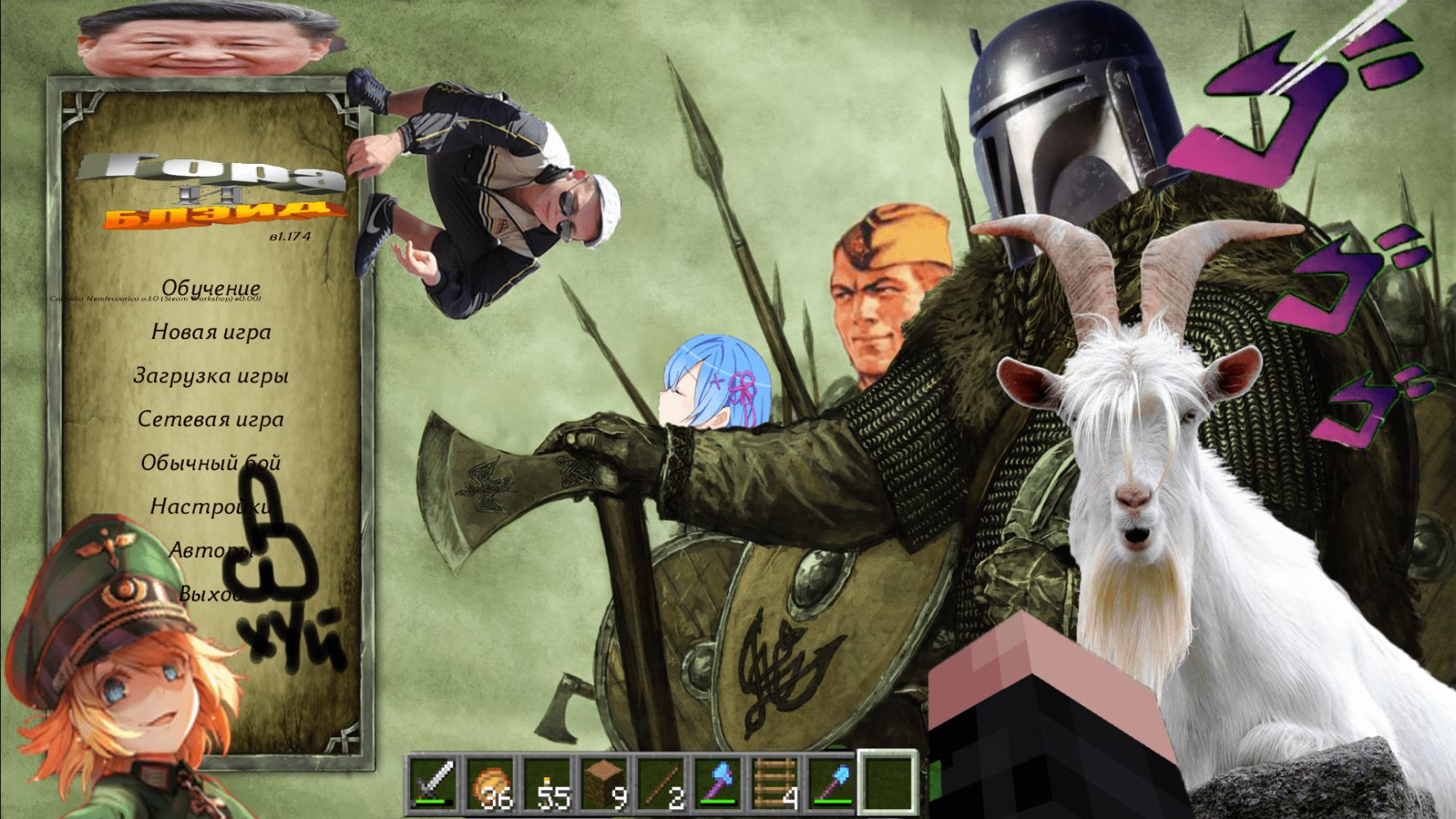 Данная модификация является переделкой известного нам мира в полный хаос. В ходе игры ваш персонаж может присоединиться к абсолютно любому царству, ведь каждое из них имеет свои особенности, которых нет в других частях этой обезумевшей страны. Каждая была перекроена под мемы, другие вселенные и истории. Прошлое вашего героя тоже изменено на более актуальное для этой местности. Лорды, воины и государства заменены на новых, чтобы каждый был разнообразен. Из предметов в основном была переделана броня, которая относится к каждой фракции и не только. В общем континент пережил кучу изменений во время создания мода. И только тебе, игрок, предстоит узнать или изменить эту впавшую в невероятную бездну страну.