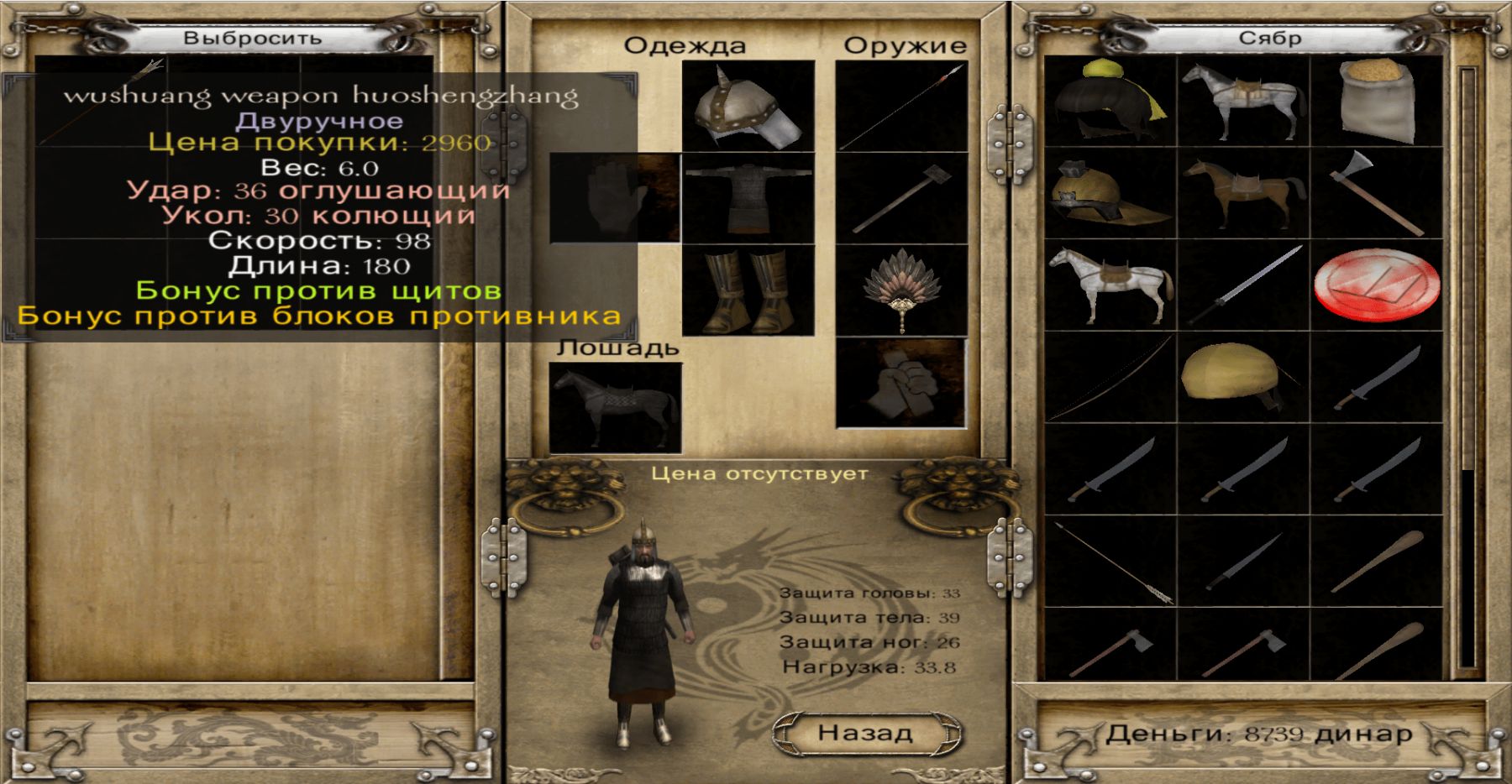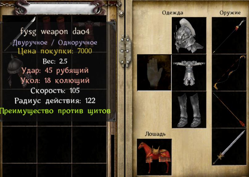 ※Переделано личное снаряжение военачальников.