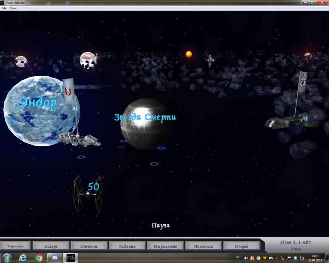 Как и все легко модифицируемые игры, Mount & Blade давно уже оброс модами по тематике известных всем вселенной. Одним из таких стал Star Wars. Данный проект позволяет нам окунуться в мир классической трилогии и встать на сторону одной из трех сторон: Галактической империи, Союза повстанцев или Картели контрабандистов. У каждой фракции своя уникальная линейка юнитов, насчитывающая около 12 юнитов. Кроме того, в игре присутствуют различные наемные войска, вроде мохнатых вуки. Игрок может стать представителем одной из 14 доступных для выбора рас и навесить на себя самую различную экипировку: джедайские робы, броню штурмовиков и т.п. А глобальная карта представляет из себя открытый космос, по которому мы путешествуем на собственной корабле.