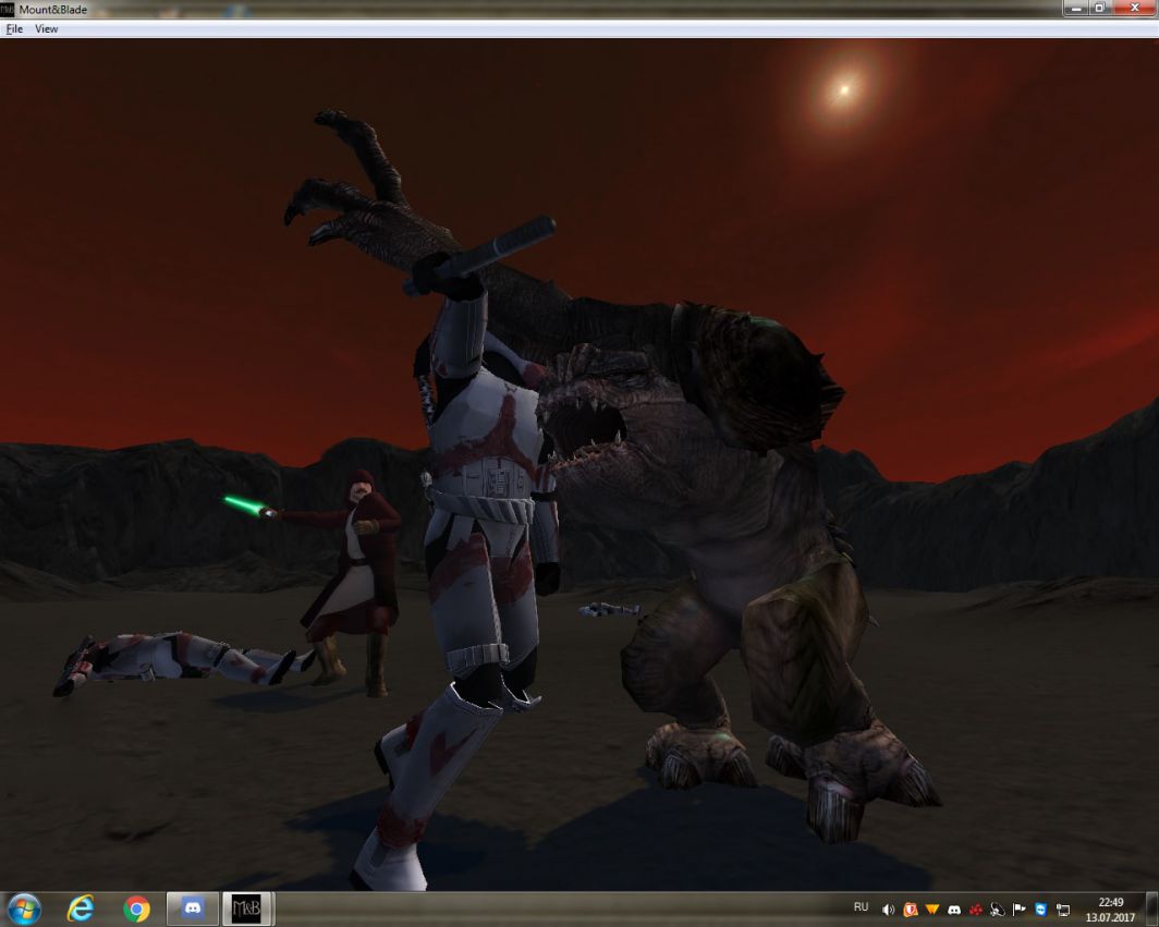 ВидеообзорКак и все легко модифицируемые игры, Mount & Blade давно уже оброс модами по тематике известных всем вселенной. Одним из таких стал Star Wars. Данный проект позволяет нам окунуться в мир классической трилогии и встать на сторону одной из трех сторон: Галактической империи, Союза повстанцев или Картели контрабандистов. У каждой фракции своя уникальная линейка юнитов, насчитывающая около 12 юнитов. Кроме того, в игре присутствуют различные наемные войска, вроде мохнатых вуки. Игрок может стать представителем одной из 14 доступных для выбора рас и навесить на себя самую различную экипировку: джедайские робы, броню штурмовиков и т.п. А глобальная карта представляет из себя открытый космос, по которому мы путешествуем на собственной корабле.