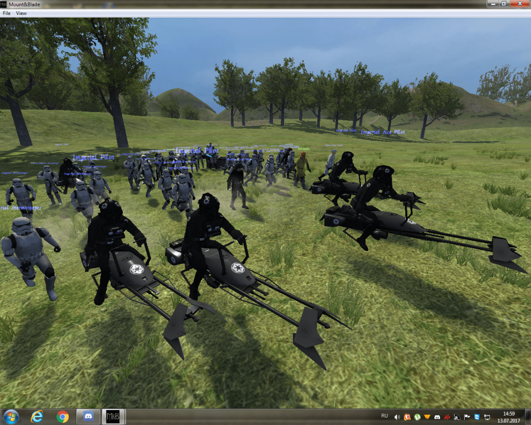Как и все легко модифицируемые игры, Mount & Blade давно уже оброс модами по тематике известных всем вселенной. Одним из таких стал Star Wars. Данный проект позволяет нам окунуться в мир классической трилогии и встать на сторону одной из трех сторон: Галактической империи, Союза повстанцев или Картели контрабандистов. У каждой фракции своя уникальная линейка юнитов, насчитывающая около 12 юнитов. Кроме того, в игре присутствуют различные наемные войска, вроде мохнатых вуки. Игрок может стать представителем одной из 14 доступных для выбора рас и навесить на себя самую различную экипировку: джедайские робы, броню штурмовиков и т.п. А глобальная карта представляет из себя открытый космос, по которому мы путешествуем на собственной корабле.